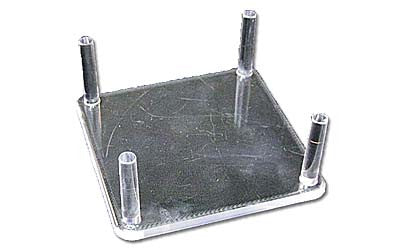 Heavy duty clear acrylic display stand for large mineral, crystal clusters, geodes specimens.  This stand is square measuring 3-3/4 x 3-3/4 x 1/3/4 inches tall.